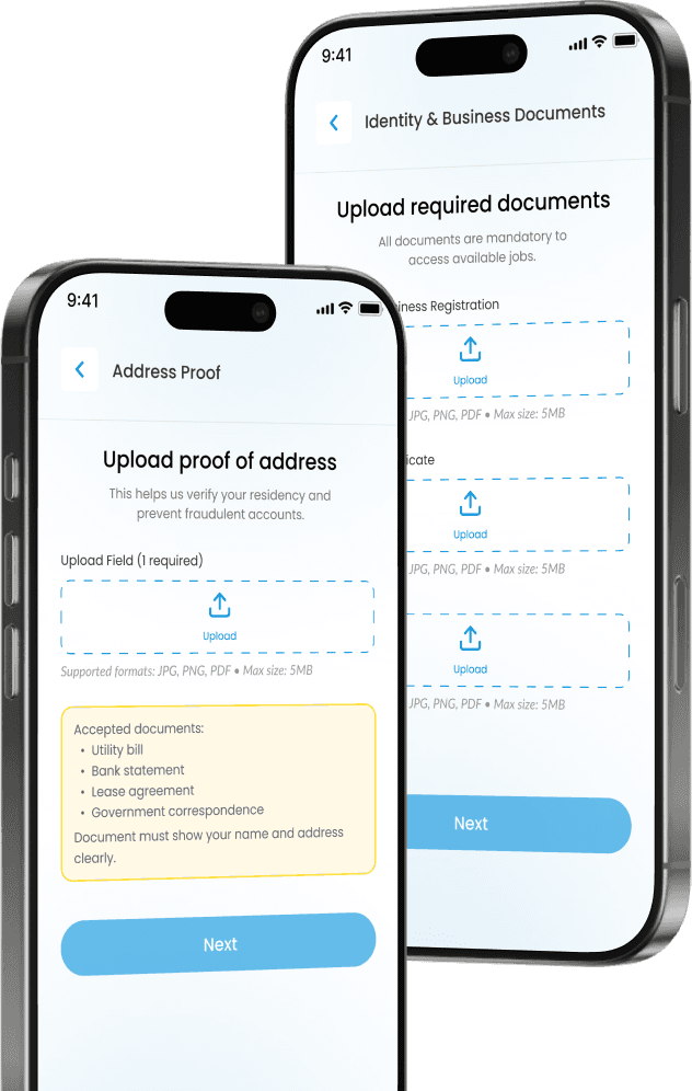 Every booking is handled by trained and verified professionals to ensure reliable service. If anything lapses and isn’t renewed, access is immediately suspended until it’s restored. No human oversight required.