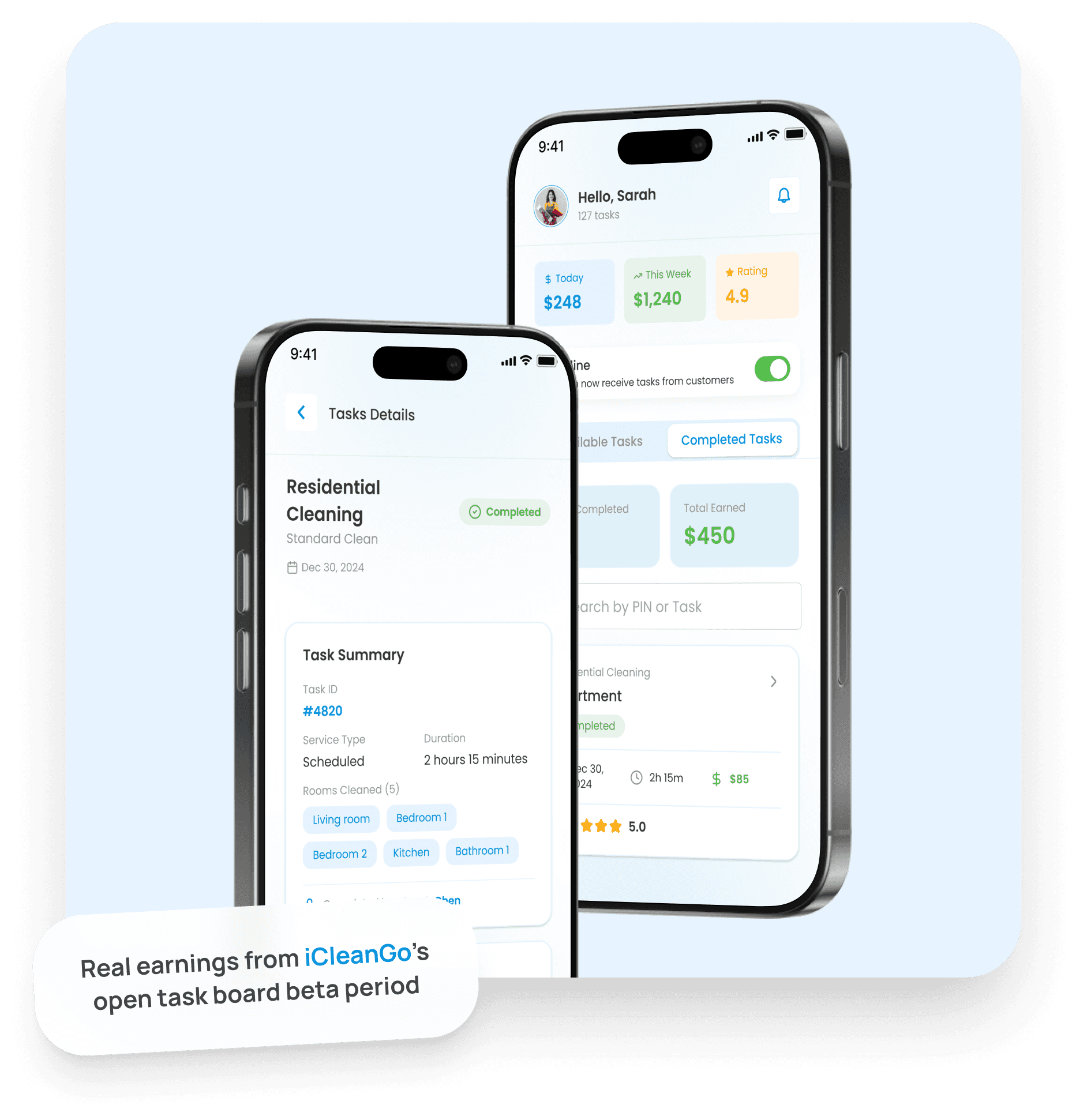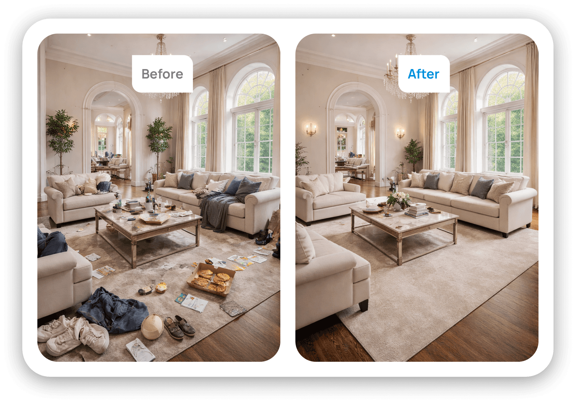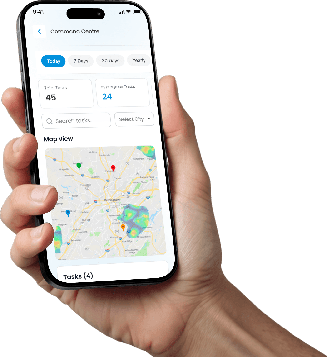 Every clean is documented in three layers your pre-booking photos, contractor arrival photos, and final completion photos. All are timestamped, geotagged, and stored as a permanent record.